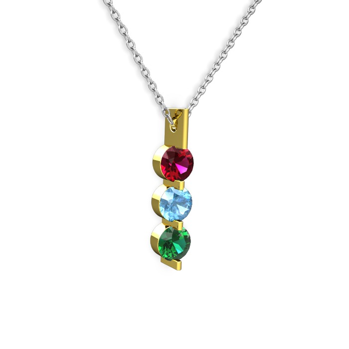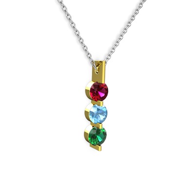Rodolit garnet, akuamarin ve yeşil kuvars 14 ayar altın kolye (40 cm beyaz altın rolo zincir)