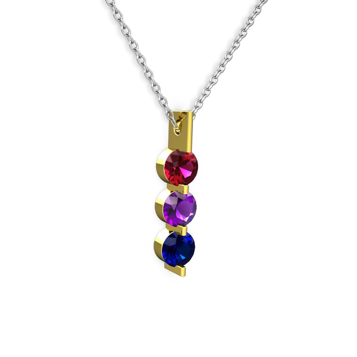 Rodolit garnet, ametist ve lab safir 925 ayar altın kaplama gümüş kolye (40 cm gümüş rolo zincir)