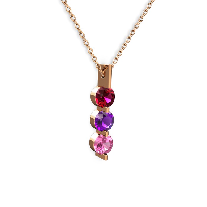 Rodolit garnet, ametist ve pembe kuvars 8 ayar rose altın kolye (40 cm gümüş rolo zincir)