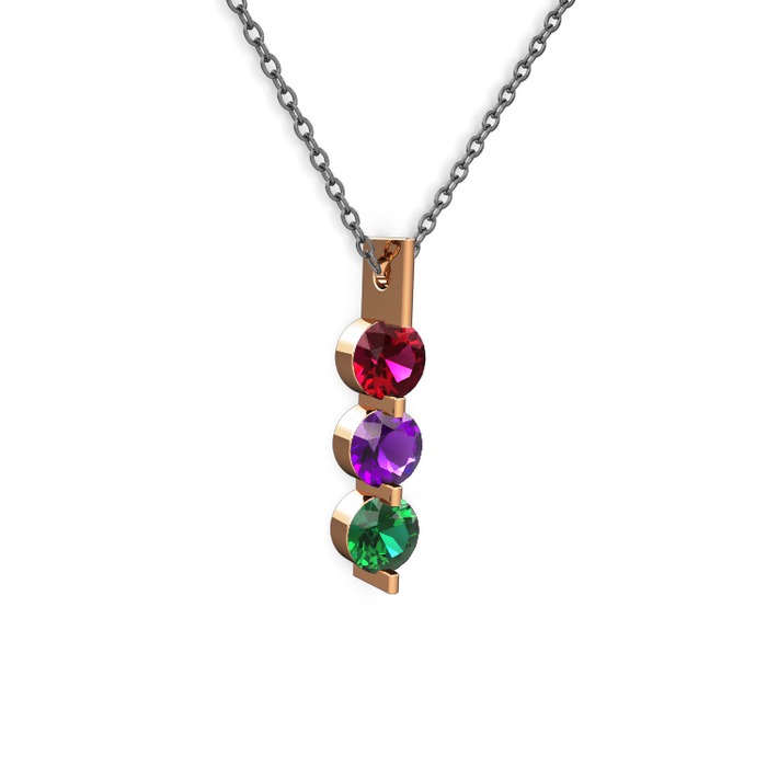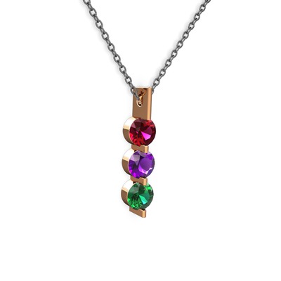 Rodolit garnet, ametist ve yeşil kuvars 14 ayar rose altın kolye (40 cm gümüş rolo zincir)