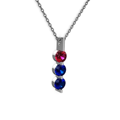 Rodolit garnet ve lab safir 14 ayar beyaz altın kolye (40 cm gümüş rolo zincir)