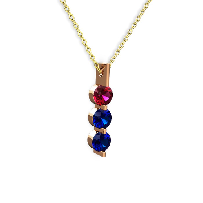 Rodolit garnet ve lab safir 8 ayar rose altın kolye (40 cm gümüş rolo zincir)
