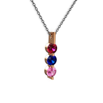 Rodolit garnet, lab safir ve pembe kuvars 925 ayar rose altın kaplama gümüş kolye (40 cm gümüş rolo zincir)