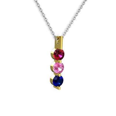 Rodolit garnet, pembe kuvars ve lab safir 8 ayar altın kolye (40 cm beyaz altın rolo zincir)