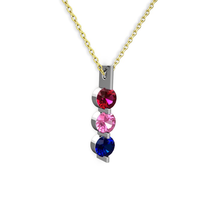 Rodolit garnet, pembe kuvars ve lab safir 8 ayar beyaz altın kolye (40 cm altın rolo zincir)