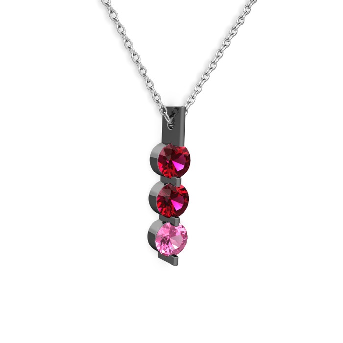 Rodolit garnet ve pembe kuvars 925 ayar siyah rodyum kaplama gümüş kolye (40 cm beyaz altın rolo zincir)