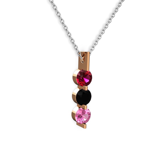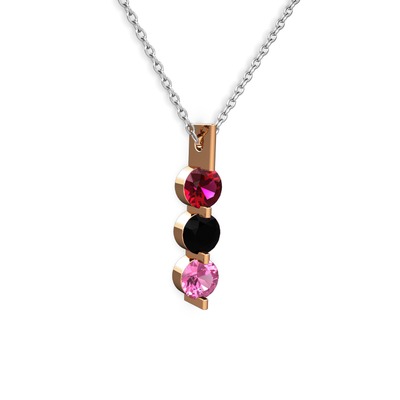 Rodolit garnet, siyah zirkon ve pembe kuvars 925 ayar rose altın kaplama gümüş kolye (40 cm beyaz altın rolo zincir)