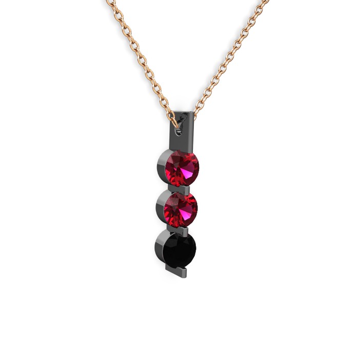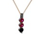 Rodolit garnet ve siyah zirkon 925 ayar siyah rodyum kaplama gümüş kolye (40 cm rose altın rolo zincir)