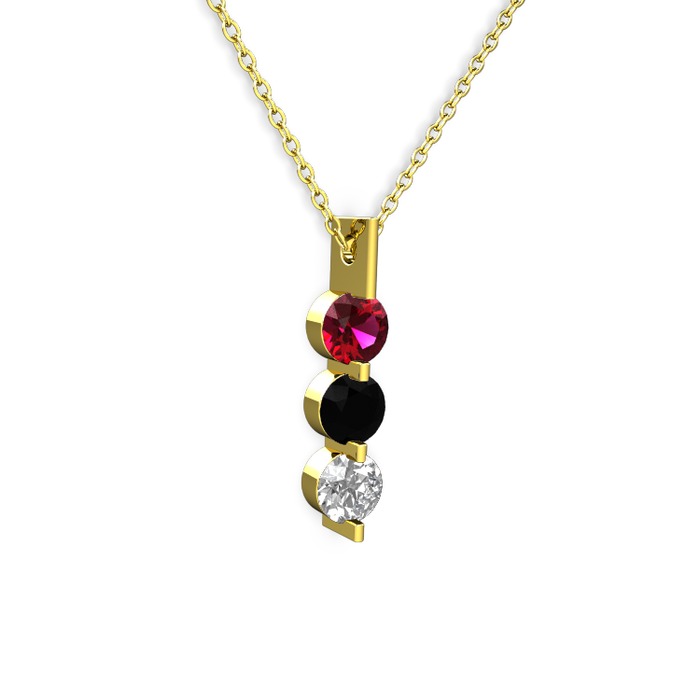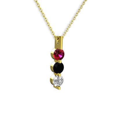 Rodolit garnet, siyah zirkon ve swarovski 14 ayar altın kolye (40 cm altın rolo zincir)