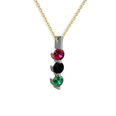 Rodolit garnet, siyah zirkon ve yeşil kuvars 8 ayar beyaz altın kolye (40 cm altın rolo zincir)