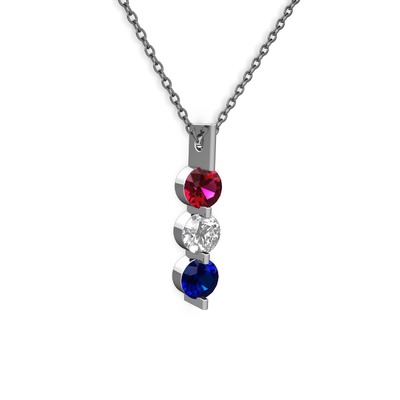Rodolit garnet, swarovski ve lab safir 8 ayar beyaz altın kolye (40 cm gümüş rolo zincir)