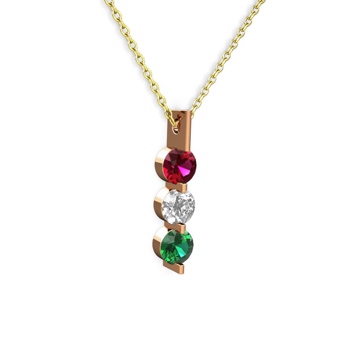 Rodolit garnet, swarovski ve yeşil kuvars 8 ayar rose altın kolye (40 cm altın rolo zincir)