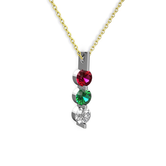 Rodolit garnet, yeşil kuvars ve swarovski 14 ayar beyaz altın kolye (40 cm altın rolo zincir)