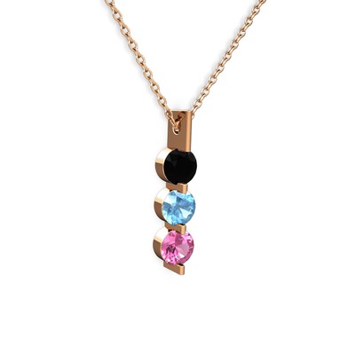 Siyah zirkon, akuamarin ve pembe kuvars 8 ayar rose altın kolye (40 cm gümüş rolo zincir)
