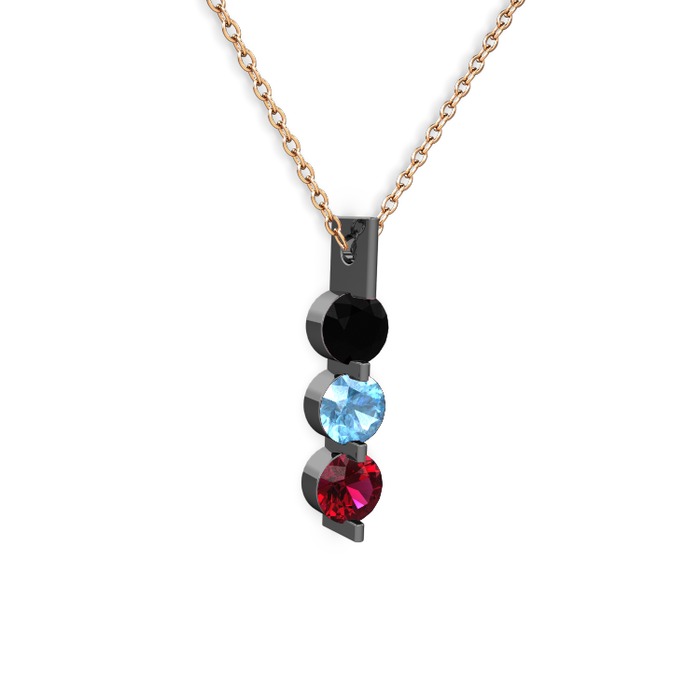 Siyah zirkon, akuamarin ve rodolit garnet 925 ayar siyah rodyum kaplama gümüş kolye (40 cm rose altın rolo zincir)