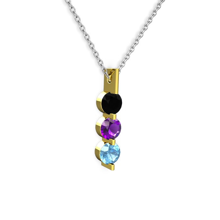 Siyah zirkon, ametist ve akuamarin 14 ayar altın kolye (40 cm beyaz altın rolo zincir)