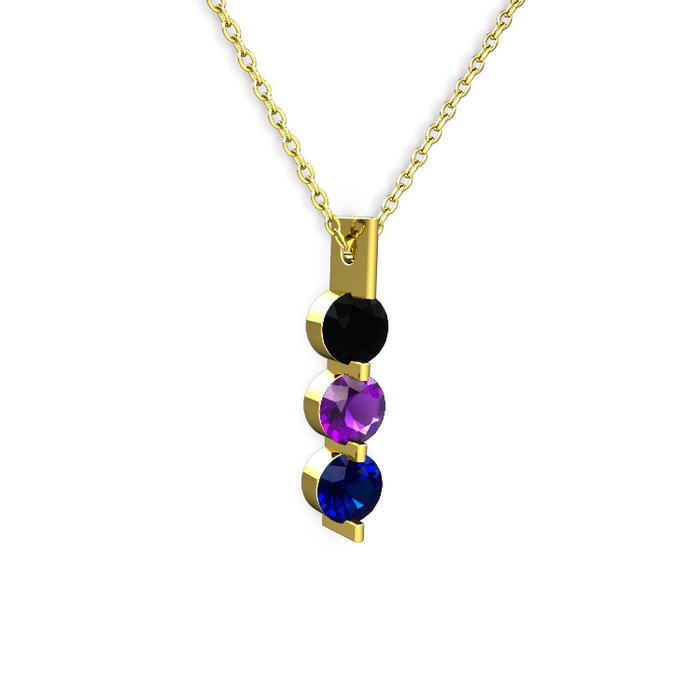 Siyah zirkon, ametist ve lab safir 14 ayar altın kolye (40 cm altın rolo zincir)