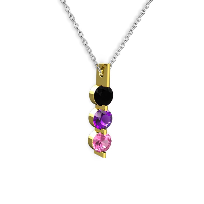 Siyah zirkon, ametist ve pembe kuvars 14 ayar altın kolye (40 cm beyaz altın rolo zincir)