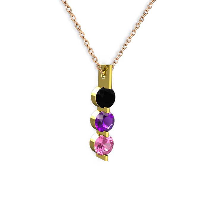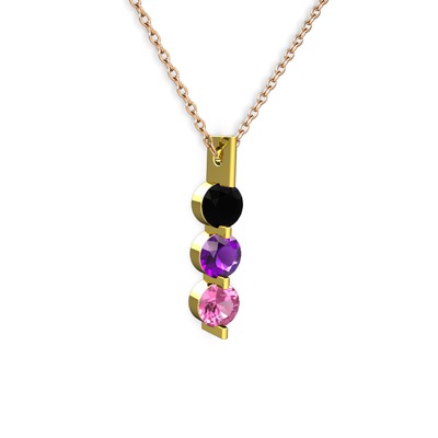 Siyah zirkon, ametist ve pembe kuvars 8 ayar altın kolye (40 cm rose altın rolo zincir)