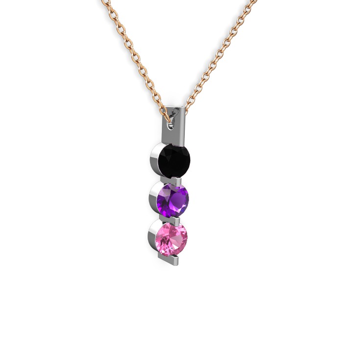 Siyah zirkon, ametist ve pembe kuvars 925 ayar gümüş kolye (40 cm gümüş rolo zincir)