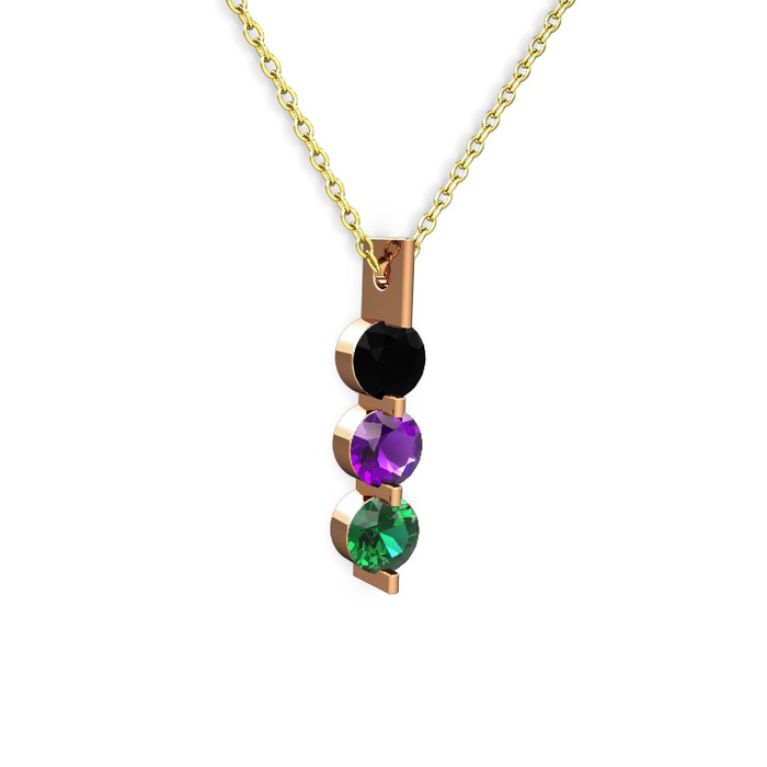 Siyah zirkon, ametist ve yeşil kuvars 925 ayar rose altın kaplama gümüş kolye (40 cm altın rolo zincir)