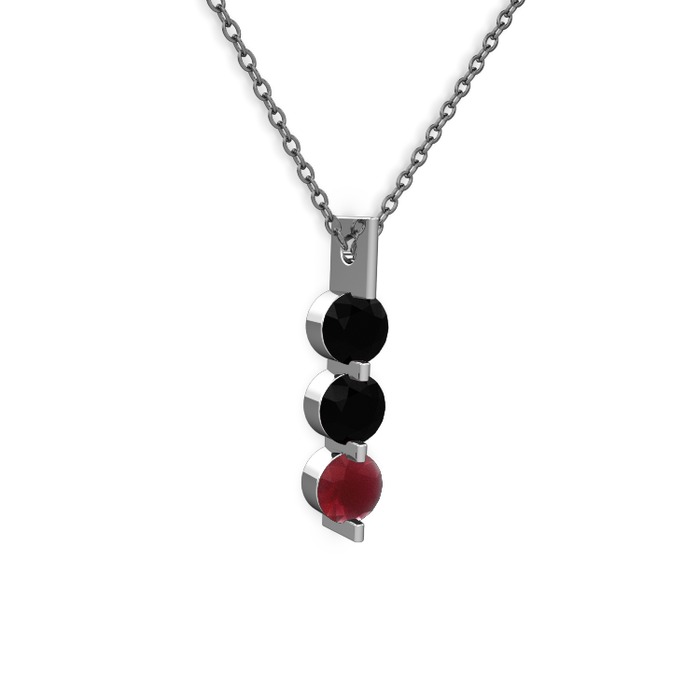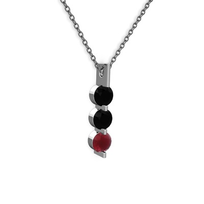 Siyah zirkon ve kök yakut 8 ayar beyaz altın kolye (40 cm gümüş rolo zincir)