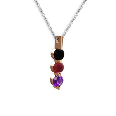 Siyah zirkon, kök yakut ve ametist 8 ayar rose altın kolye (40 cm beyaz altın rolo zincir)