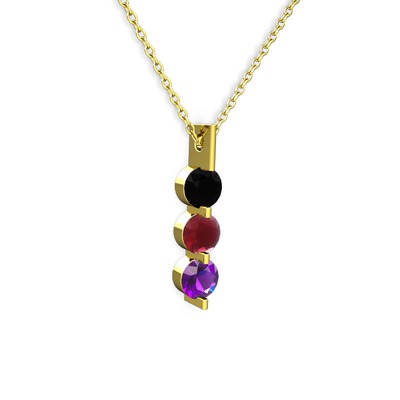 Siyah zirkon, kök yakut ve ametist 925 ayar altın kaplama gümüş kolye (40 cm altın rolo zincir)
