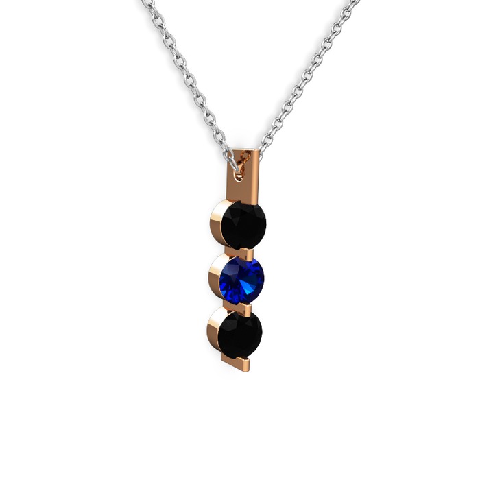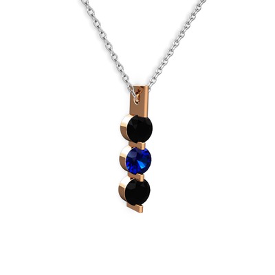 Siyah zirkon ve lab safir 14 ayar rose altın kolye (40 cm beyaz altın rolo zincir)