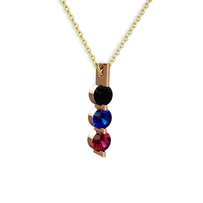 Siyah zirkon, lab safir ve rodolit garnet 925 ayar rose altın kaplama gümüş kolye (40 cm altın rolo zincir)