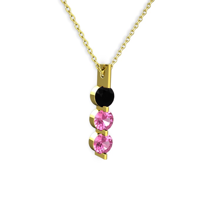 Siyah zirkon ve pembe kuvars 8 ayar altın kolye (40 cm altın rolo zincir)
