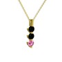 Siyah zirkon ve pembe kuvars 925 ayar altın kaplama gümüş kolye (40 cm altın rolo zincir)