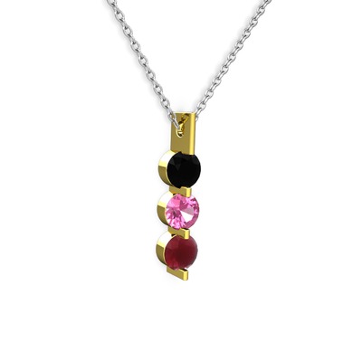 Siyah zirkon, pembe kuvars ve kök yakut 925 ayar altın kaplama gümüş kolye (40 cm gümüş rolo zincir)