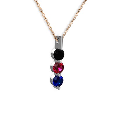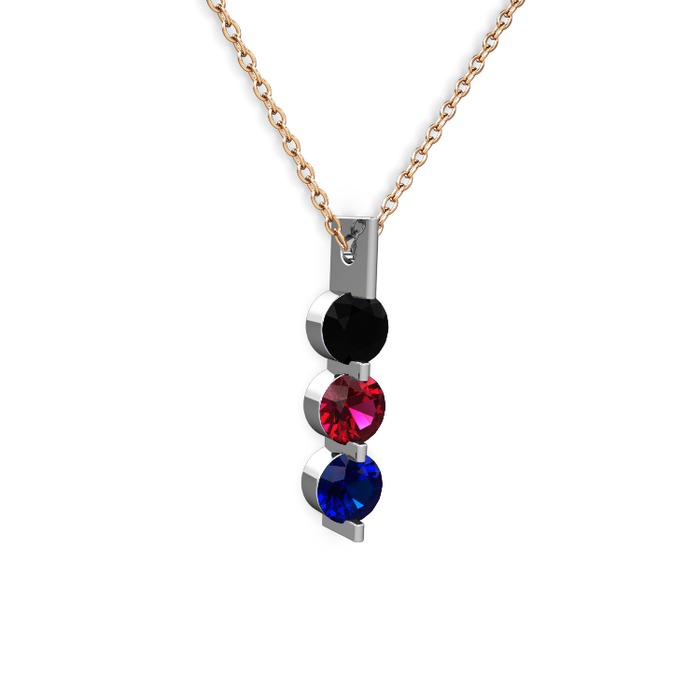 Siyah zirkon, rodolit garnet ve lab safir 14 ayar beyaz altın kolye (40 cm rose altın rolo zincir)