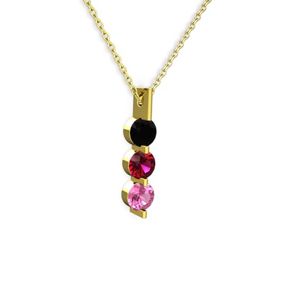 Siyah zirkon, rodolit garnet ve pembe kuvars 8 ayar altın kolye (40 cm altın rolo zincir)