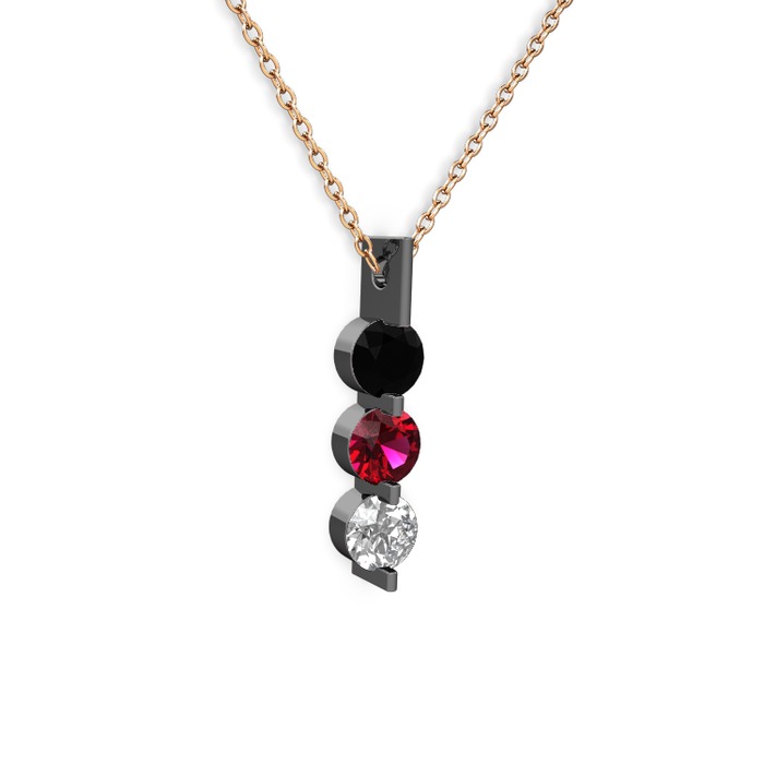 Siyah zirkon, rodolit garnet ve swarovski 925 ayar siyah rodyum kaplama gümüş kolye (40 cm gümüş rolo zincir)