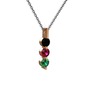 Siyah zirkon, rodolit garnet ve yeşil kuvars 925 ayar rose altın kaplama gümüş kolye (40 cm gümüş rolo zincir)