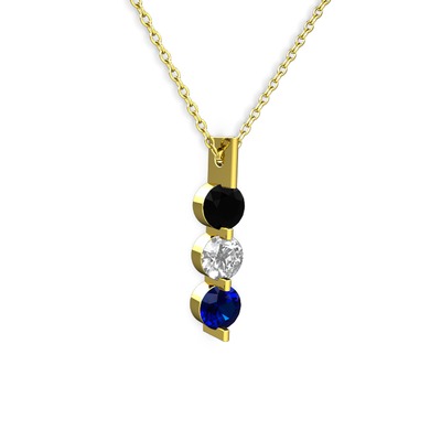 Siyah zirkon, swarovski ve lab safir 8 ayar altın kolye (40 cm gümüş rolo zincir)