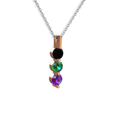 Siyah zirkon, yeşil kuvars ve ametist 8 ayar rose altın kolye (40 cm beyaz altın rolo zincir)