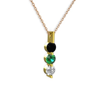 Siyah zirkon, yeşil kuvars ve swarovski 8 ayar altın kolye (40 cm gümüş rolo zincir)