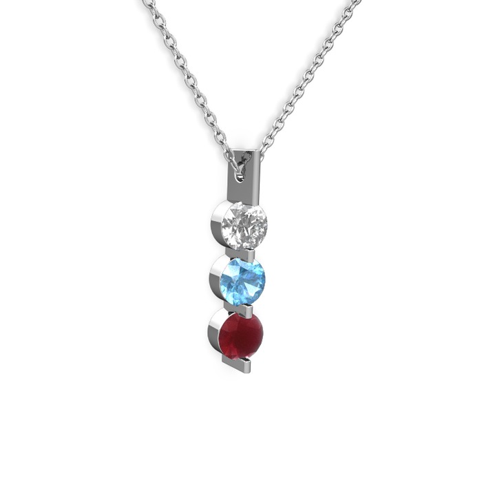 Swarovski, akuamarin ve kök yakut 8 ayar beyaz altın kolye (40 cm beyaz altın rolo zincir)