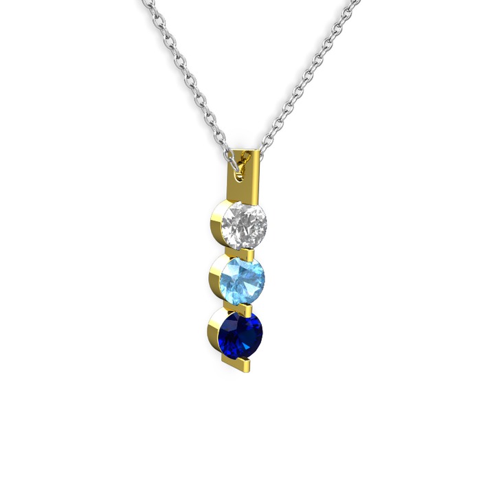 Swarovski, akuamarin ve lab safir 8 ayar altın kolye (40 cm beyaz altın rolo zincir)
