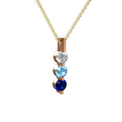 Swarovski, akuamarin ve lab safir 925 ayar rose altın kaplama gümüş kolye (40 cm gümüş rolo zincir)