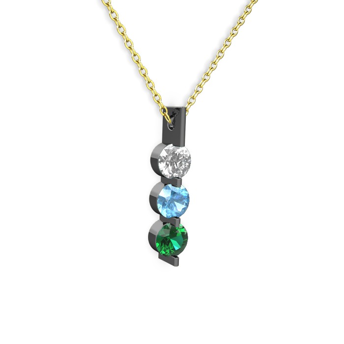 Swarovski, akuamarin ve yeşil kuvars 925 ayar siyah rodyum kaplama gümüş kolye (40 cm gümüş rolo zincir)