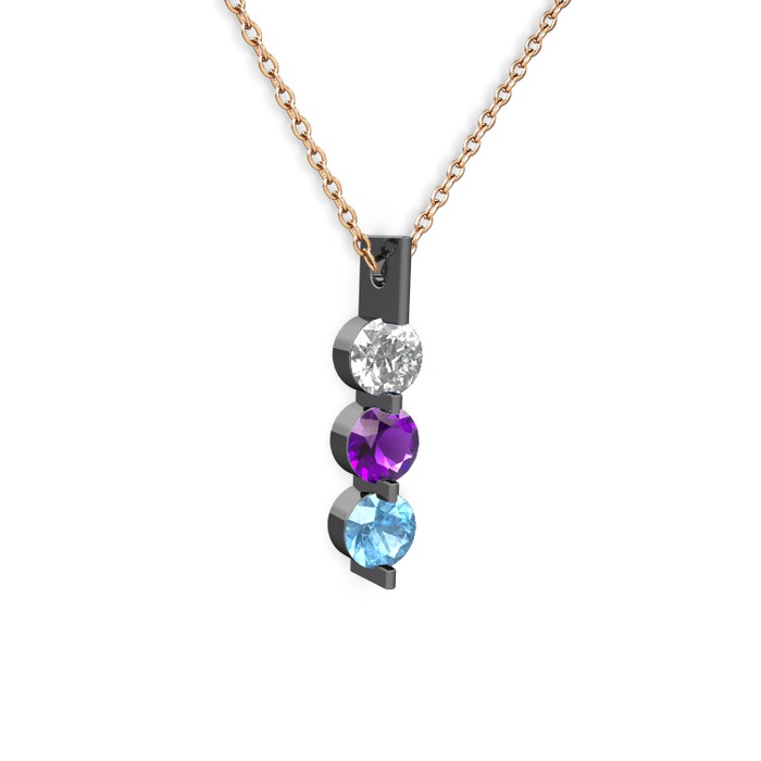 Swarovski, ametist ve akuamarin 925 ayar siyah rodyum kaplama gümüş kolye (40 cm rose altın rolo zincir)