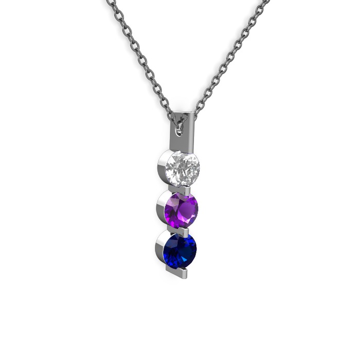 Swarovski, ametist ve lab safir 8 ayar beyaz altın kolye (40 cm gümüş rolo zincir)