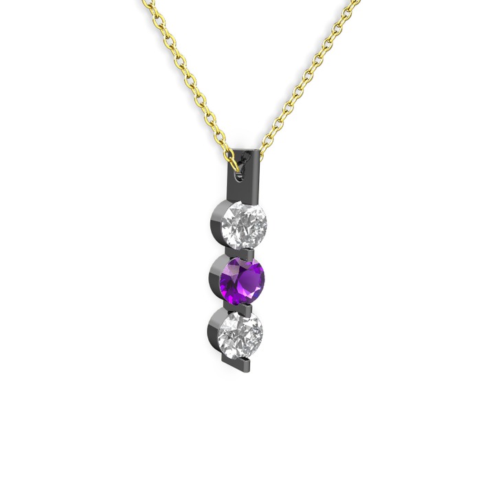 Swarovski ve ametist 925 ayar siyah rodyum kaplama gümüş kolye (40 cm gümüş rolo zincir)