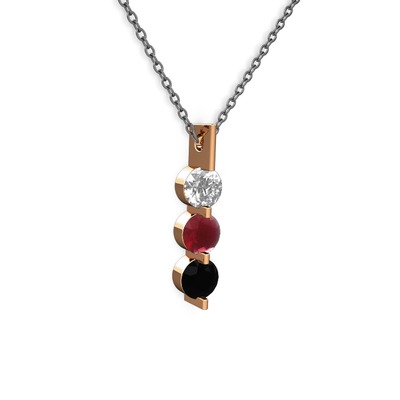 Swarovski, kök yakut ve siyah zirkon 14 ayar rose altın kolye (40 cm gümüş rolo zincir)