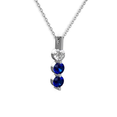 Swarovski ve lab safir 8 ayar beyaz altın kolye (40 cm beyaz altın rolo zincir)