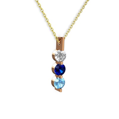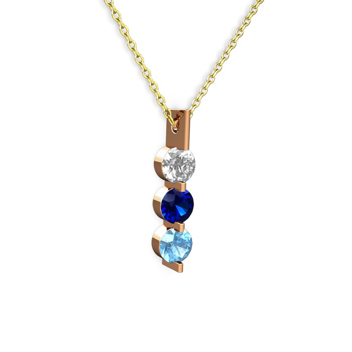 Swarovski, lab safir ve akuamarin 8 ayar rose altın kolye (40 cm gümüş rolo zincir)